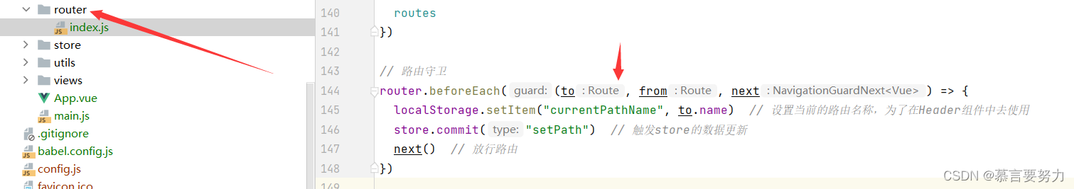 // 路由守衛(wèi)router.beforeEach((to, from, next) => { localStorage.setItem("currentPathName", to.name) // 設(shè)置當(dāng)前的路由名稱,為了在Header組件中去使用 store.commit("setPath") // 觸發(fā)store的數(shù)據(jù)更新 next() // 放行路由})2.store文件夾