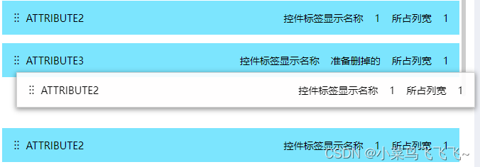 import * as React from "react"import { Checkbox } from "antd"import Sortable from "./dragcomponents"import "./index.scss"const _ = require("lodash")import store from "./store"import { SAVE_RENDER_ALL_DATA } from "./actionType"const Usedrag: React.FC<any> = (props) => { const { state, dispatch } = React.useContext(store); // 自定義拖拽體 const {upDateRenderData} = props const showdata ={...props.renderData} function AddForm(showdata) {return ( < div className="ItemBox"><div className="name"><span className="icon iconfont iconyidongshu"></span>{showdata.data.valuedata.fieldName}</div><div className="Opt"> <span>控件標簽顯示名稱<span>{showdata.data.valuedata.labelName}</span></span> <span>所占列寬<span>{showdata.data.valuedata.span}</span></span> {/* <Checkbox onChange={changeChecked} checked={checked} ></Checkbox> */}</div> </div>) } const updateSource = (val) => {const arrdata: any = _.cloneDeep(props.renderData)const arr: any = _.cloneDeep(val)if(JSON.stringify(arrdata) !== JSON.stringify(arr)){ for (let i = 0; i <= arr.length - 1; i++) {arr[i].edit = 1; }}// upDateRenderData(arr)dispatch({ type: SAVE_RENDER_ALL_DATA, value: arr}) } return (<div className="RightBox" > <div className="item-con" style={{ overflow: "auto" }}><Sortable className="sortable" dataSource={...props.renderData} ComSortItem={(p) => <AddForm {...p} />} sortEnd={(val) => {updateSource(val) }}/> </div></div> );};export default Usedrag3.使用
