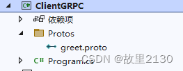 <ItemGroup> <Protobuf Include='Protos\greet.proto' GrpcServices='Client' /> </ItemGroup>7.然后在Program中調用