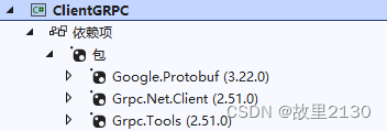 using Grpc.Net.Client;using GrpcService1;namespace ClientGRPC{ internal class Program {static void Main(string[] args){ string url = 'https://localhost:5001'; //https using (var channel = GrpcChannel.ForAddress(url)) {var client = new Greeter.GreeterClient(channel);var reply = client.SayHello(new HelloRequest(){ Name = '故里2130'});Console.WriteLine($'結果:message:{reply.Message}'); } Console.ReadKey(); //AppContext.SetSwitch('System.Net.Http.SocketsHttpHandler.Http2UnencryptedSupport', true); //http調用 //string url = 'http://localhost:5000'; //using (var channel = GrpcChannel.ForAddress(url)) //{ // var client = new Greeter.GreeterClient(channel); // var reply = client.SayHello(new HelloRequest() // { //Name = '故里2130' // }); // Console.WriteLine($'結果:message:{reply.Message}'); //} //Console.ReadKey();} }}8.效果