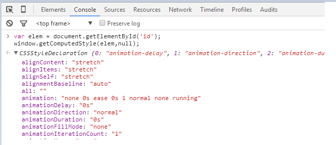 假設我們頁面上存在一個 id 為 id 的元素,那么使用getComputedStyle 獲取元素樣式就如下圖所示: