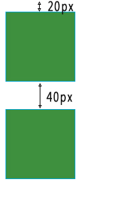 <style>div{ width: 100px; height: 100px; border: 1px solid #00A4CC; background-color: #3e8f3e;}.div1{ margin:20px 0;}.div2{ margin:40px 0;}</style></head><body><div></div><div></div></body>效果顯示如下: