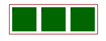 每一個盒子的左外邊緣(margin-left)會觸碰到容器的左邊緣(border-left)(對于從右到左的格式來說,則觸碰到右邊緣)