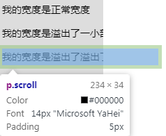 <div>    <p title="我的寬度是正常寬度">我的寬度是正常寬度</p>    <p title="我的寬度是溢出了一小部分">我的寬度是溢出了一小部分</p>    <p title="我的寬度是溢出了溢出了很大一部分">我的寬度是溢出了溢出了很大一部分</p></div>