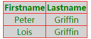 table {border-collapse: collapse;}table, td, th {border: 1px solid red;background-color:lightgray;color:green;text-align:center}