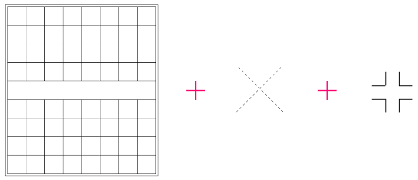 我們對(duì)整個(gè)布局進(jìn)行一下拆分,大致可以分為三部分:網(wǎng)格 + 虛線交叉十字 + 特殊符號(hào):