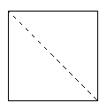 div { position: relative; margin: auto; width: 100px; height: 100px; border: 1px solid #000; background: // 漸變 1 repeating-linear-gradient(-45deg, transparent 0, transparent 5px, #fff 5px, #fff 10px),// 漸變 2linear-gradient(45deg,transparent 0, transparent calc(50% - 0.5px),#000 calc(50% - 0.5px), #000 calc(50% + 0.5px),transparent calc(50% + 0.5px), transparent 0);}這樣,我們就得到了一條虛線: