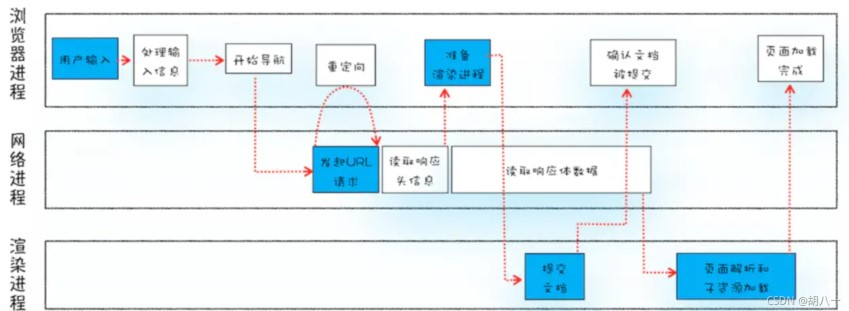 從用戶輸入信息到頁面展示的不同階段,是不同的進程在發(fā)揮作用,示意圖如下: