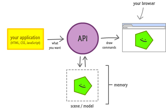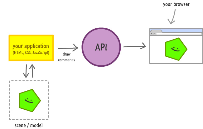 Canvas采用了和DOM不同的快速模式(Immediate Mode),讓我們先來看看快速模式是如工作的: