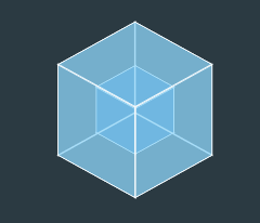 .cube { width: 100px; height: 100px; transform-style: preserve-3d; transform-origin: 50px 50px; transform: rotateX(-33.5deg) rotateY(45deg); li { position: absolute; top: 0; left: 0; width: 100px; height: 100px; background: rgba(141, 214, 249); border: 1px solid #fff; } .top { transform: rotateX(90deg) translateZ(50px); } .bottom { transform: rotateX(-90deg) translateZ(50px); } .front { transform: translateZ(50px); } .back { transform: rotateX(-180deg) translateZ(50px); } .left { transform: rotateY(-90deg) translateZ(50px); } .right { transform: rotateY(90deg) translateZ(50px); }}疊加兩個(gè),調(diào)整顏色和透明度,我們可以非常輕松的實(shí)現(xiàn) Webpack 的 LOGO: