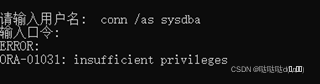 然后執行conn /as sysdba,不用輸入口令直接登錄