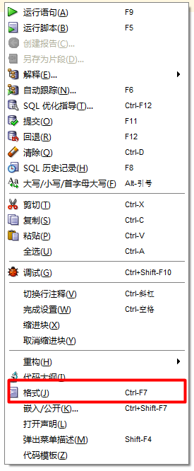 3、運行SQL語句:(格式化:Ctrl+F7)