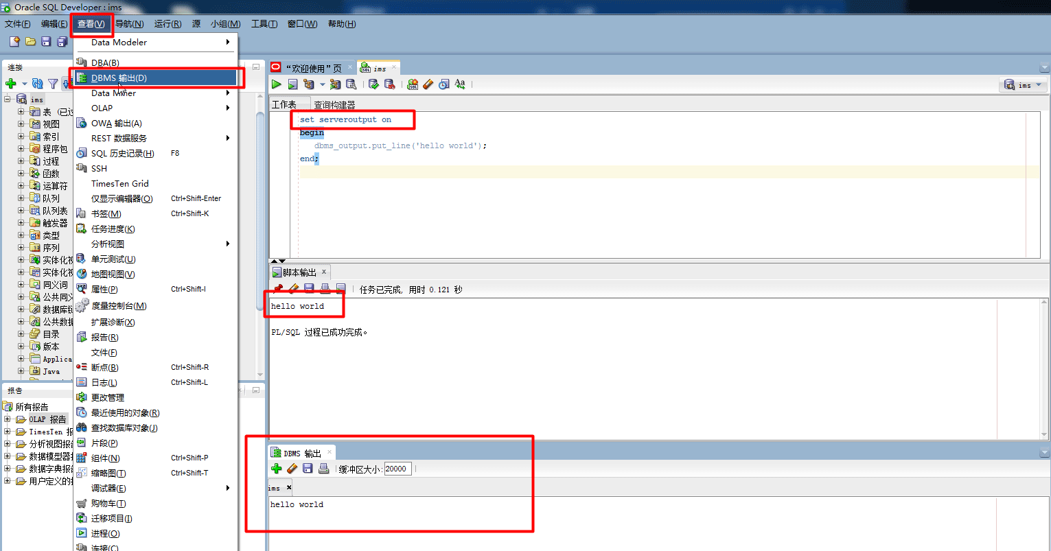 調用 set serveroutput on 或顯示DBMS輸出窗口,啟用DBMS輸出。