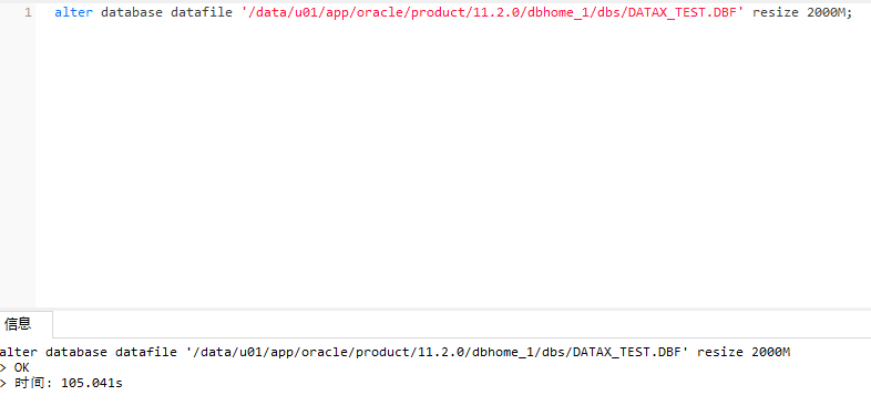 alter database datafile "/data/u01/app/oracle/product/11.2.0/dbhome_1/dbs/DATAX_TEST.DBF" resize 2000M;