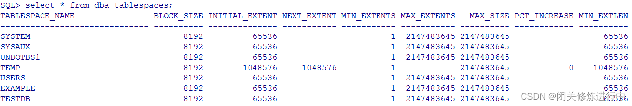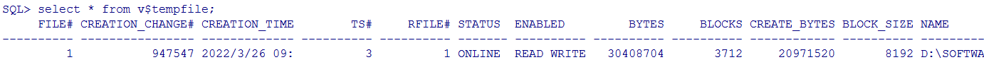 CONTENTS字段值為TEMPORARY,即臨時表空間