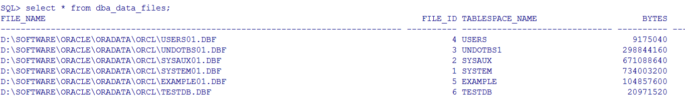 (3) 查看除臨時表空間外 表空間對應的數據文件