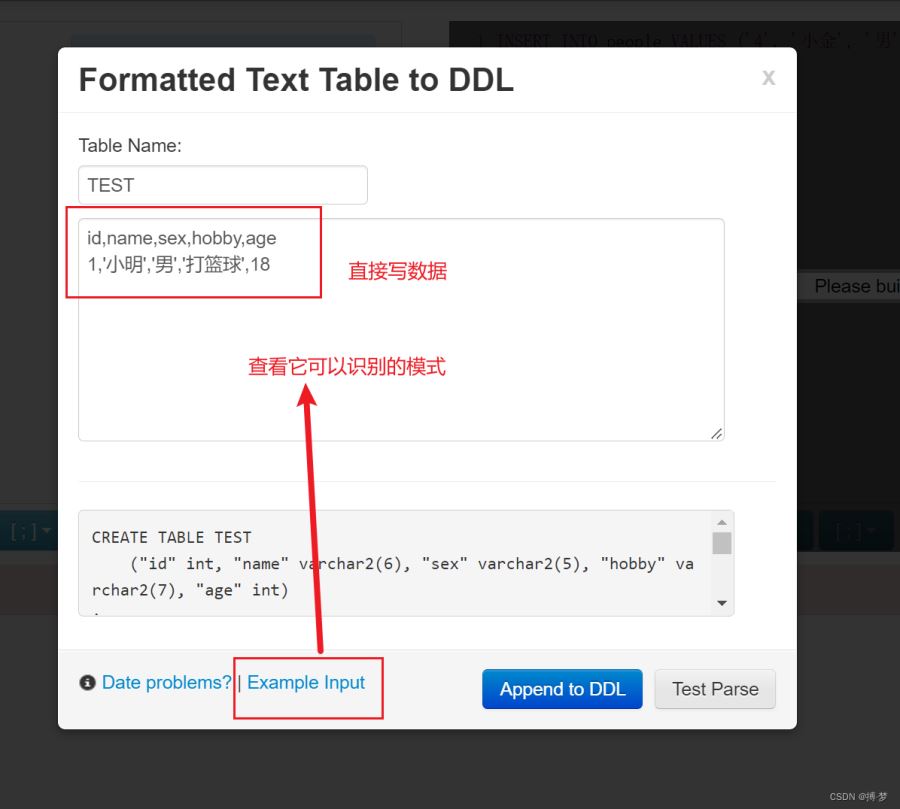 如果不想每次都自己手巧建表語句,可以使用頁面頭標簽的Text to DDL: