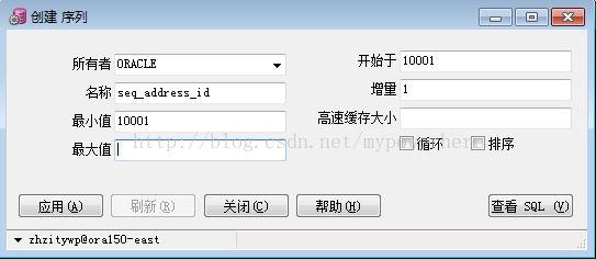 選擇序列所有者,并填寫序列的起始值、名稱和增量等信息,并應用