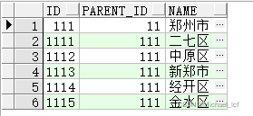 create table area_test( id number(10) not null, parent_id number(10), name varchar2(255) not null);alter table area_test add (constraint district_pk primary key (id));insert into area_test (ID, PARENT_ID, NAME) values (1, null, "中國(guó)");insert into area_test (ID, PARENT_ID, NAME) values (11, 1, "河南省"); insert into area_test (ID, PARENT_ID, NAME) values (12, 1, "北京市");insert into area_test (ID, PARENT_ID, NAME) values (111, 11, "鄭州市");insert into area_test (ID, PARENT_ID, NAME) values (112, 11, "平頂山市");insert into area_test (ID, PARENT_ID, NAME) values (113, 11, "洛陽(yáng)市");insert into area_test (ID, PARENT_ID, NAME) values (114, 11, "新鄉(xiāng)市");insert into area_test (ID, PARENT_ID, NAME) values (115, 11, "南陽(yáng)市");insert into area_test (ID, PARENT_ID, NAME) values (121, 12, "朝陽(yáng)區(qū)");insert into area_test (ID, PARENT_ID, NAME) values (122, 12, "昌平區(qū)");insert into area_test (ID, PARENT_ID, NAME) values (1111, 111, "二七區(qū)");insert into area_test (ID, PARENT_ID, NAME) values (1112, 111, "中原區(qū)");insert into area_test (ID, PARENT_ID, NAME) values (1113, 111, "新鄭市");insert into area_test (ID, PARENT_ID, NAME) values (1114, 111, "經(jīng)開(kāi)區(qū)");insert into area_test (ID, PARENT_ID, NAME) values (1115, 111, "金水區(qū)");insert into area_test (ID, PARENT_ID, NAME) values (1121, 112, "湛河區(qū)");insert into area_test (ID, PARENT_ID, NAME) values (1122, 112, "舞鋼市");insert into area_test (ID, PARENT_ID, NAME) values (1123, 112, "寶豐市");insert into area_test (ID, PARENT_ID, NAME) values (11221, 1122, "尚店鎮(zhèn)");