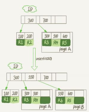 假設(shè)圖1中page A已經(jīng)滿了,這時我要再插入一行數(shù)據(jù),會怎樣呢?