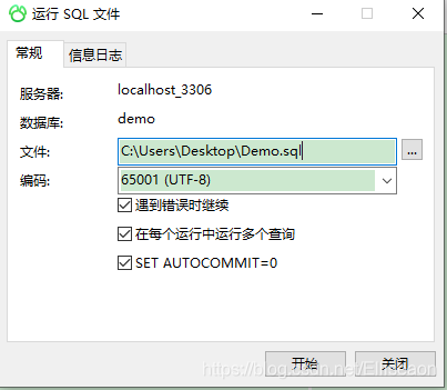 - 2.指定數(shù)據(jù)庫名和字符集(可根據(jù)sql文件的字符集類型自行選擇)