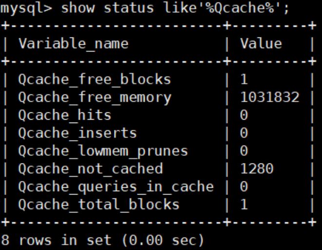 mysql> show status like"%Qcache%"; //查看運行的緩存信息