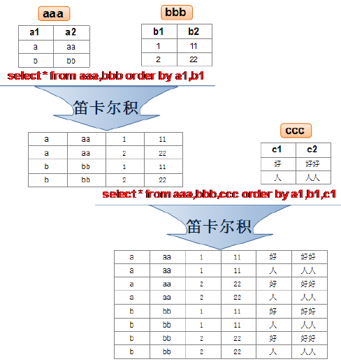 因此把多表查詢中出現的問題稱為:笛卡爾積的錯誤。