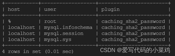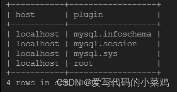 select host, user, plugin from user;