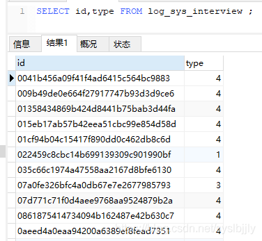 SELECT id,type FROM log_sys_interview ;