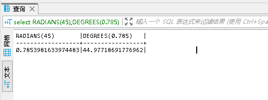 9.角度與弧度相互轉換的函數RADIANS(x)和DEGREES(x)
