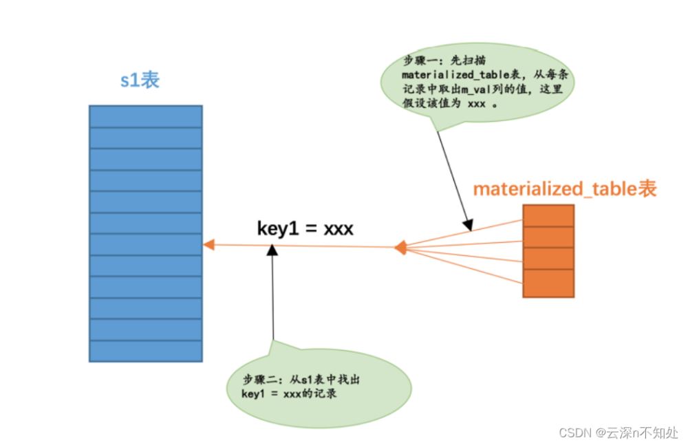 也就是說其實上邊的查詢就相當于表 s1 和子查詢物化表 materialized_table 進行內連接: