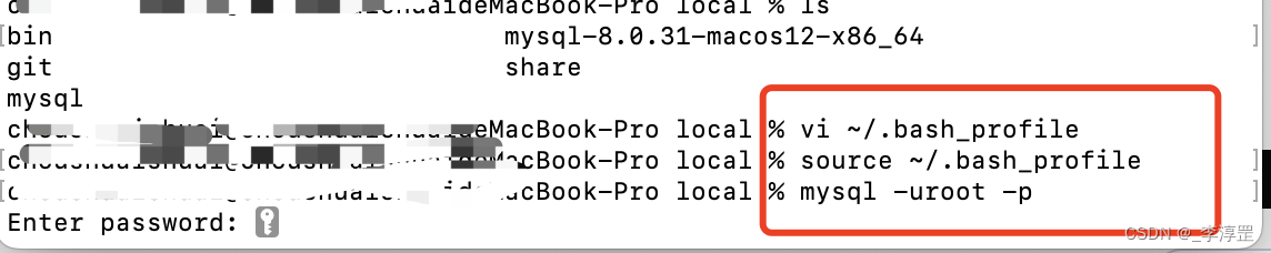 Mysql 配置 在mac終端打開文件:vi ~/.bash_profile加入語句:PATH=$PATH:/usr/local/mysql/bin使配置的語句生效:source ~/.bash_profile