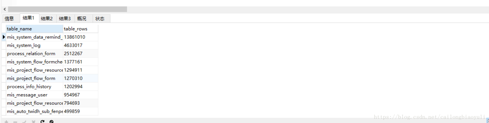 今天還原了一個數據庫。發現數據量有數十GB,想著看看哪些表的數據量多,于是查詢了下。數據還真不少。3000多萬行,這兒一張表居然有近1400萬數據。....慚愧。以前沒做什么處理。