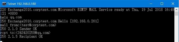 至此已經新建了一個允許192.168.0.201此IP向Exchange的25端口匿名投遞郵件的接收連接器,測試在192.168.0.201客戶端上匿名發送郵件成功: