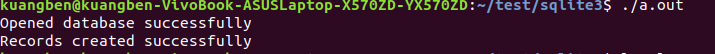 #include <stdio.h>#include <stdlib.h>#include <sqlite3.h> static int callback(void *NotUsed, int argc, char **argv, char **azColName){ int i; for(i=0; i<argc; i++){ printf("%s = %s\n", azColName[i], argv[i] ? argv[i] : "NULL"); } printf("\n"); return 0;} int main(int argc, char* argv[]){ sqlite3 *db; char *zErrMsg = 0; int rc; char *sql; /* Open database */ rc = sqlite3_open("test.db", &db); if( rc ){ fprintf(stderr, "Can"t open database: %s\n", sqlite3_errmsg(db)); exit(0); }else{ fprintf(stderr, "Opened database successfully\n"); } /* Create SQL statement */ sql = "INSERT INTO COMPANY (ID,NAME,AGE,ADDRESS,SALARY) " \ "VALUES (1, "Paul", 32, "California", 20000.00 ); " \ "INSERT INTO COMPANY (ID,NAME,AGE,ADDRESS,SALARY) " \ "VALUES (2, "Allen", 25, "Texas", 15000.00 ); " \ "INSERT INTO COMPANY (ID,NAME,AGE,ADDRESS,SALARY)" \ "VALUES (3, "Teddy", 23, "Norway", 20000.00 );" \ "INSERT INTO COMPANY (ID,NAME,AGE,ADDRESS,SALARY)" \ "VALUES (4, "Mark", 25, "Rich-Mond ", 65000.00 );"; /* Execute SQL statement */ rc = sqlite3_exec(db, sql, callback, 0, &zErrMsg); if( rc != SQLITE_OK ){ fprintf(stderr, "SQL error: %s\n", zErrMsg); sqlite3_free(zErrMsg); }else{ fprintf(stdout, "Records created successfully\n"); } sqlite3_close(db); return 0;}輸出結果: