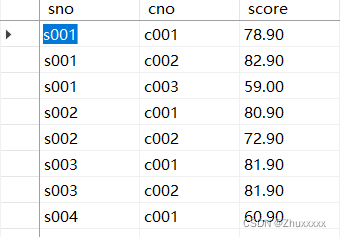 sno為學(xué)號(hào),cno為所學(xué)課程,score為成績(jī)