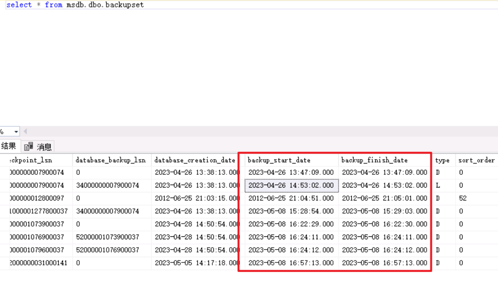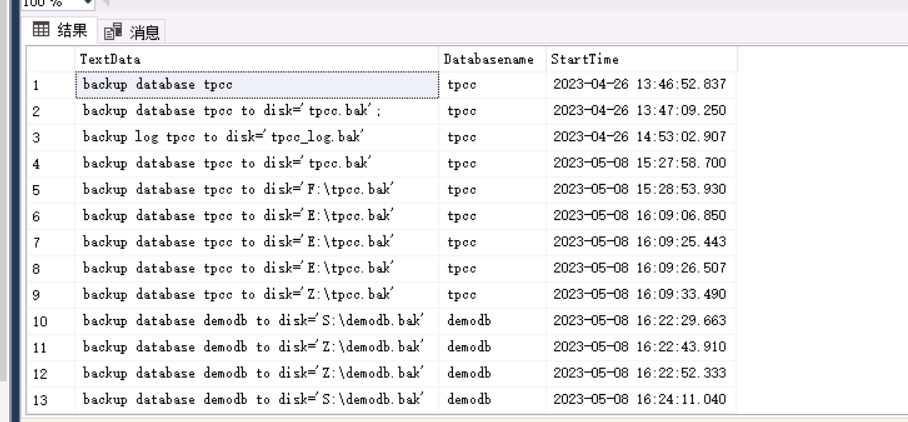形成了具體的思路后,下面將trace轉換的表的StartTime列與backupset表的backup_start_date列進行對比判斷
