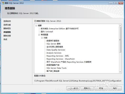 8、 接著進入“準備刪除”階段,有配置文件路徑,然后點擊“刪除”按鈕