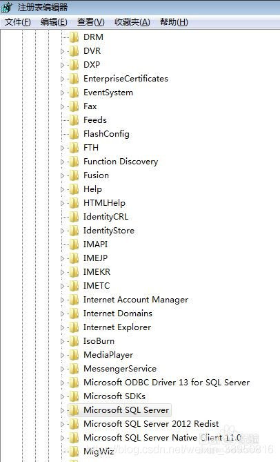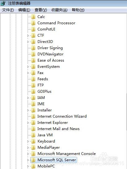 (2)HKEY_CURRENT_USER–>Software–>Microsoft–>Microsoft SQL Server,刪除;