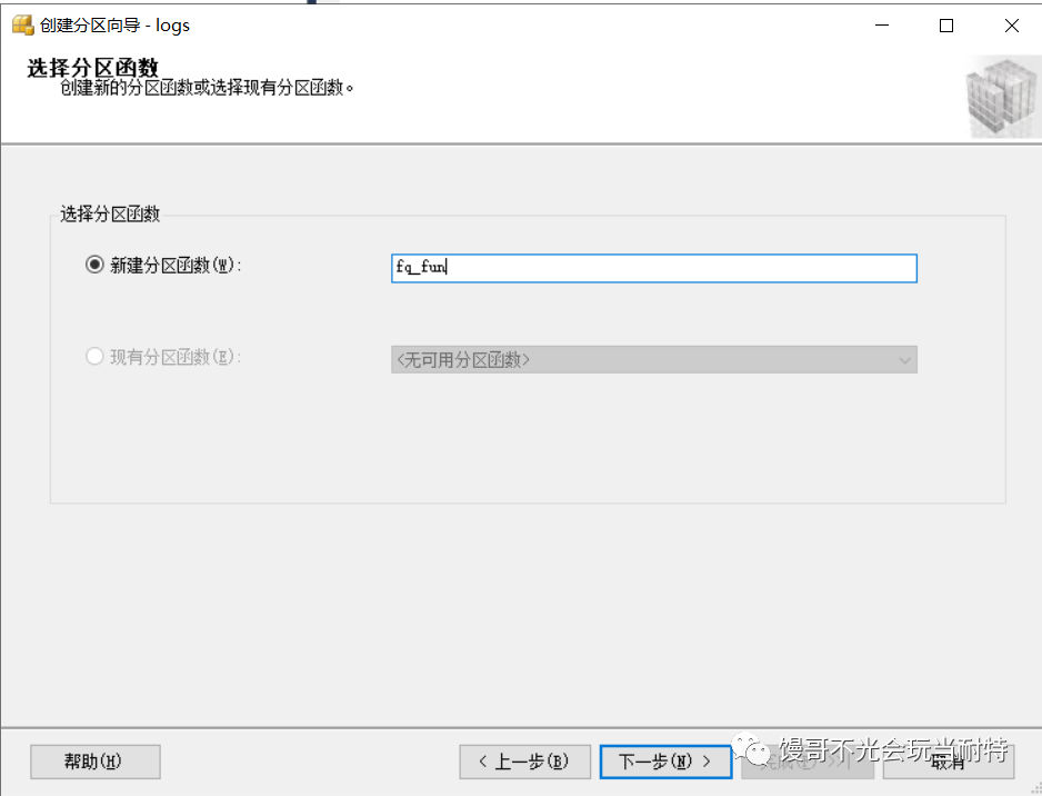 新建一個(gè)分區(qū)函數(shù),點(diǎn)擊下一步。