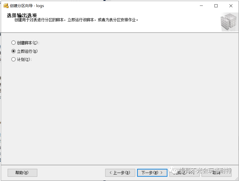 建好分區(qū)函數(shù)、分區(qū)方案后,可以選擇生成腳本或者立即執(zhí)行。