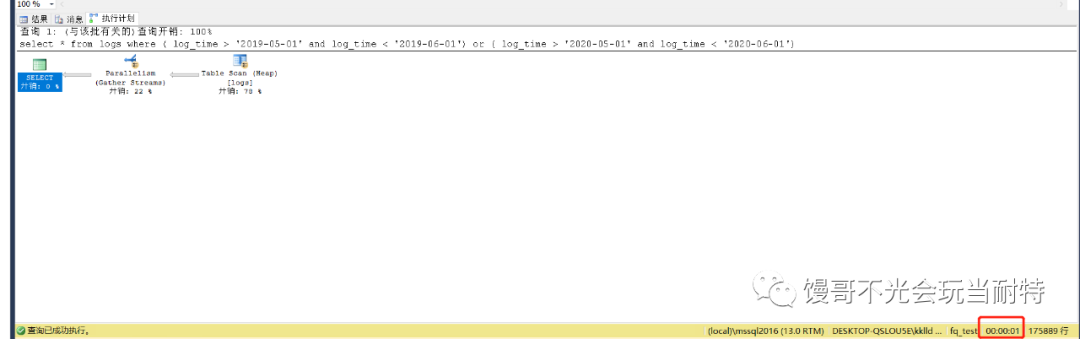 把表按前面的方法進(jìn)行分區(qū)拆分,查詢花費(fèi)時(shí)間為1s。