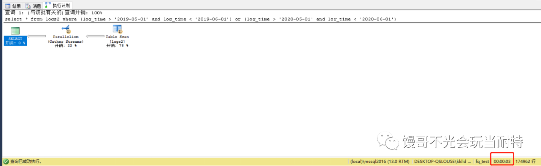 我們的測(cè)試方案:新建一張log2表,使用上面的代碼按年份寫入2000000數(shù)據(jù)。然后使用select語句同時(shí)讀取2019,2020年的數(shù)據(jù)。把log表轉(zhuǎn)換成分區(qū)表,重新測(cè)試select的時(shí)間。比較兩次讀取數(shù)據(jù)的時(shí)間。