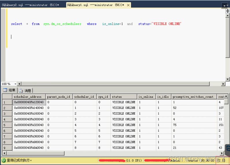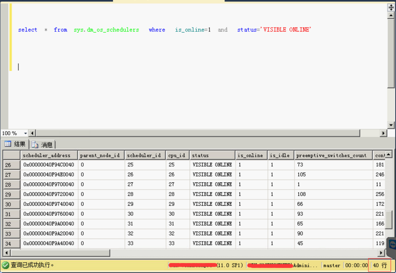select * from sys.dm_os_schedulers where is_online=1 AND status='VISIBLE ONLINE'