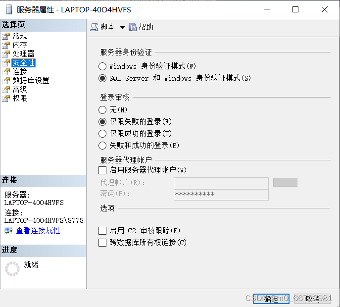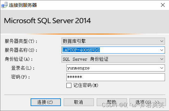 LAPTOP-40O6HVDS是我的服務器名稱,在這里你需要打開你的SQL Sever登錄界面進行查看。