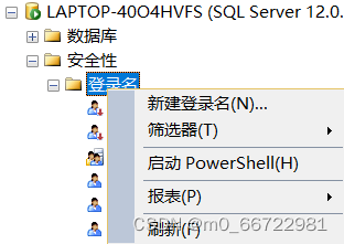 雙擊登錄名后點擊鼠標右鍵,點擊新建登錄名: