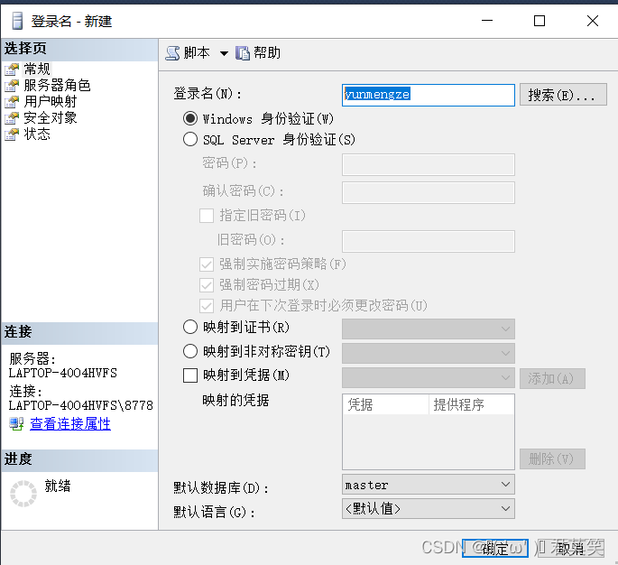 我的SQL Sever下載的時候就是用的電腦身份驗證登錄的,需要設置密碼登錄: