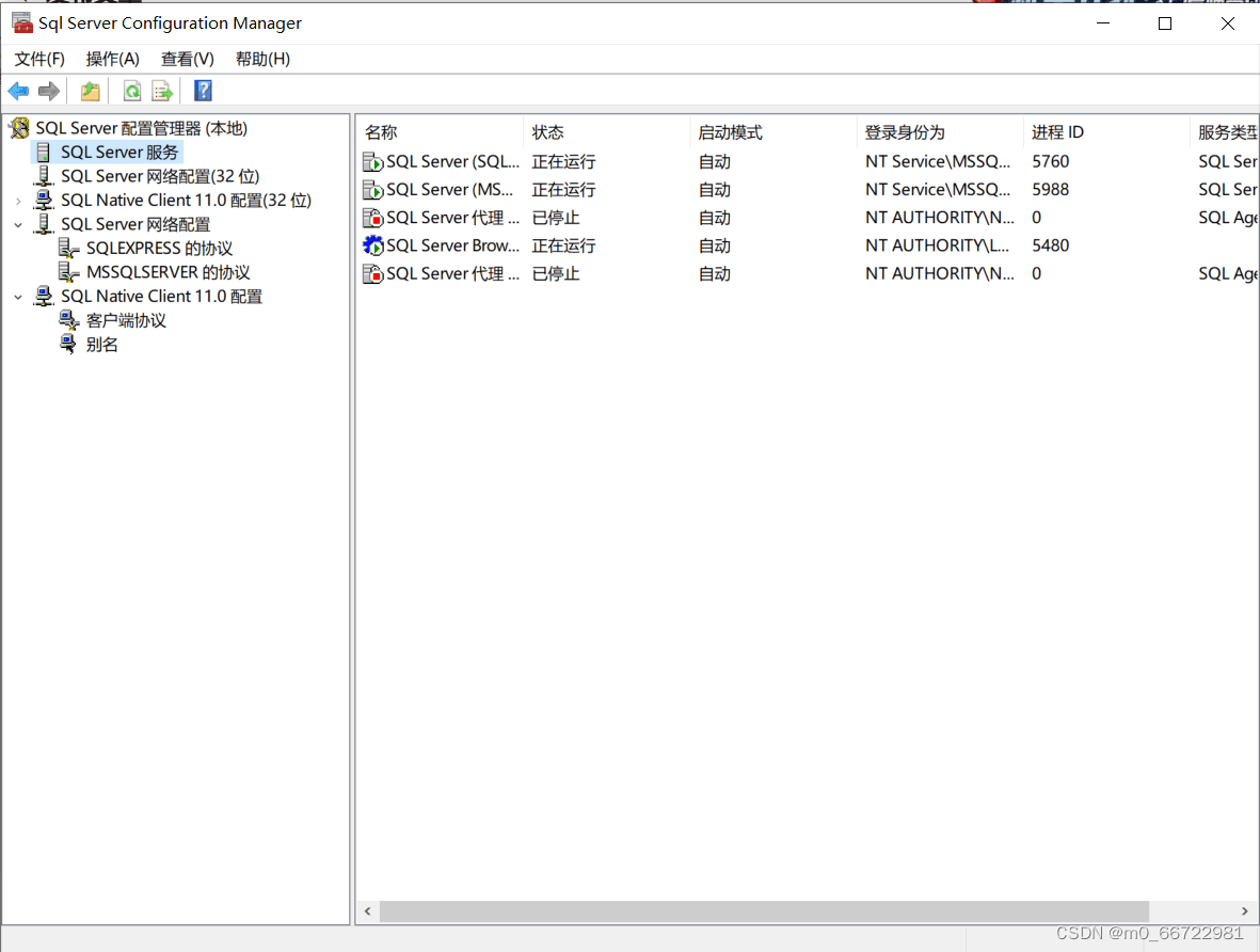點擊SQL Sever網絡配置,然后點擊MSSQLSEVER的協議:
