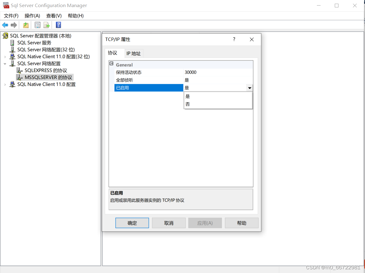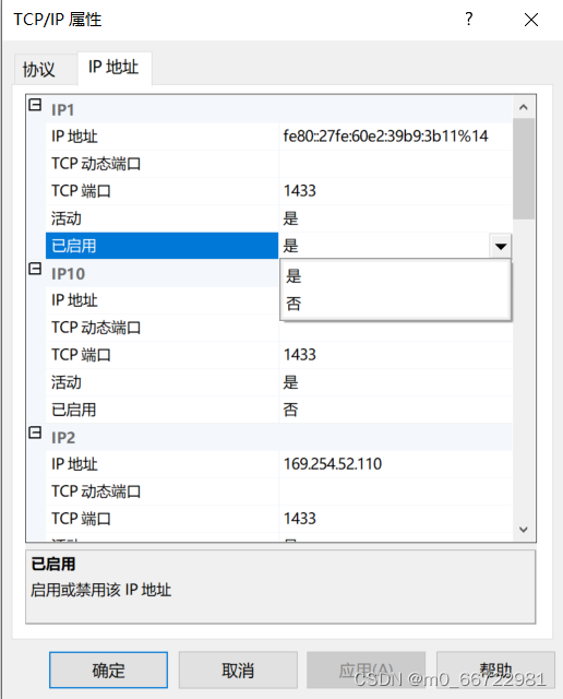 將IP1、IP2的啟用改為是,觀察TCP端口是不是1433。(一共改兩個)