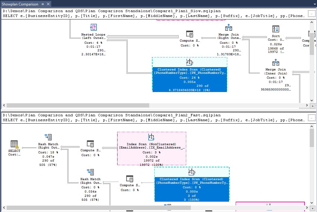 - 兩個以前保存的執行計劃文件(擴展名為 .sqlplan)。